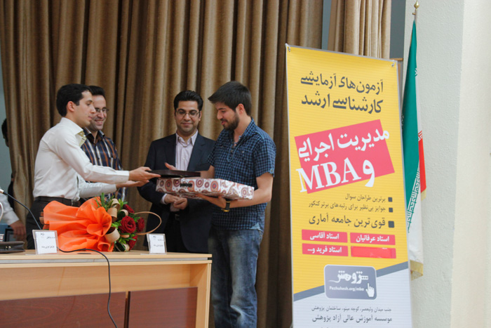 | درتاریخ دوم خرداد ماه 1392 موسسه آموزش عالی آزاد پژوهش اقدام به برگزاری همایش بزرگ تخصصی "آشنائی با رشته های مدیریت اجرایی و MBA وارائه راهکارهای موفقیت درکنکور کارشناسی ارشد" با حضور اساتید برتر کنکور این رشته ها و رتبه های برتر سال گذشته در سالن همایش دانشکده اقتصاد دانشگاه تهران نمود. در این مراسم از اساتید موسسه و بیشتر از 30 رتبه زیر 100 این دو رشته تقدیر به عمل آمد.همچنین در این مراسم استاد عرفانیان (مدرس درس GMAT و مشاورارشد دپارتمان) به سخنرانی در مورد راهکارهای موفقیت در کنکور ارشد مدیریت اجرایی و MBA پرداختند.درادامه این مراسم دکتر فرید مدرس درس زبان عمومی و تخصصی به معرفی و اهمیت درس خود در کنکور پرداختند. |